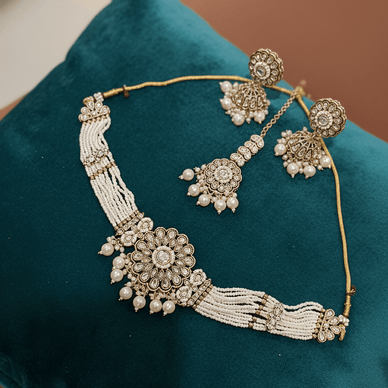 Choker Necklace Set (Includes Necklace, Earrings & Maang Tikka)